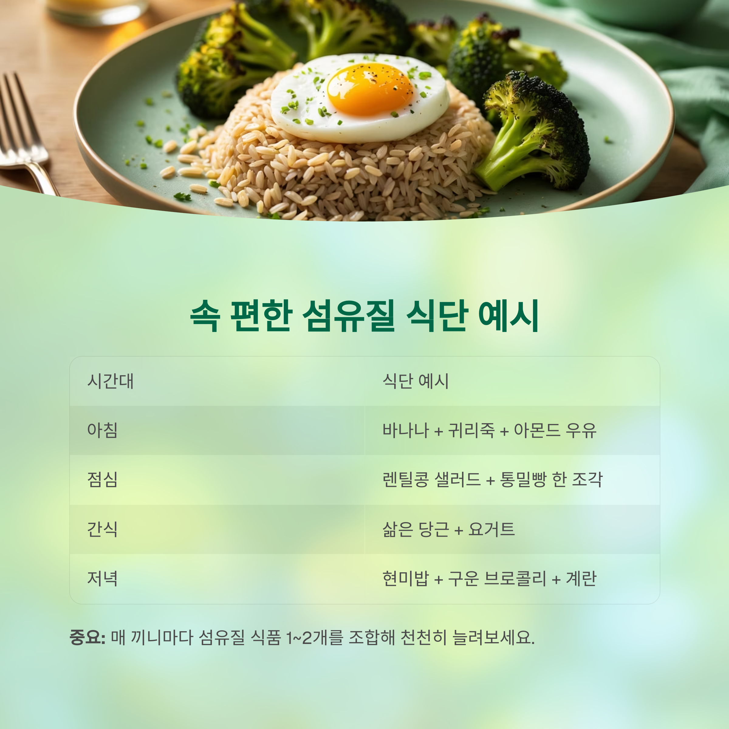 1. 하루 한 끼씩 섬유질 식품 추가